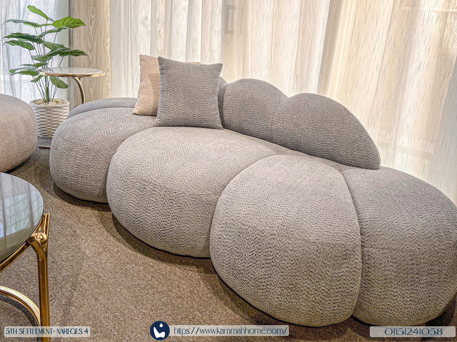 ملمس مخملي فاخر تنجيد من قماش راستا (Rasta Fabric) الفاخر (من نجيب سليم)، الذي يعزز الراحة ويمنح المجموعة إحساساً فاخراً وملمساً دافئاً. تفاصيل فاخرة: اختيار خامات من كبار الموردين لضمان ملمس وجودة تليق بـ “قماح هوم”.